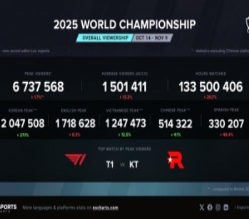 S15总决赛T1对阵KT观众峰值达673w,不及24年T1vsBLG 大精灵 2025-11-10 16:21:11 体育资讯11月10日称 昨日T1和KT的总决赛观众峰值达到了673w,而T1对阵BLG是694w。 决赛 观众 上一篇: LOL赛事官方晒解说杯海报:吾胃竞巅峰,快乐多一点 下一篇: 希然晒照:这一次作为主持人见证赛事长河里新的历史,何其有幸