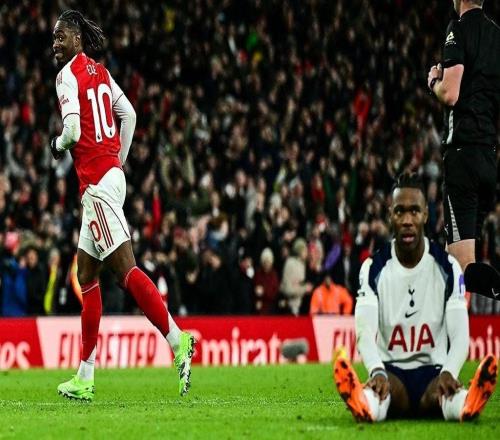 北伦敦德比阿德巴约攻破枪手挑衅庆祝8分钟后废人动作直红离场 -